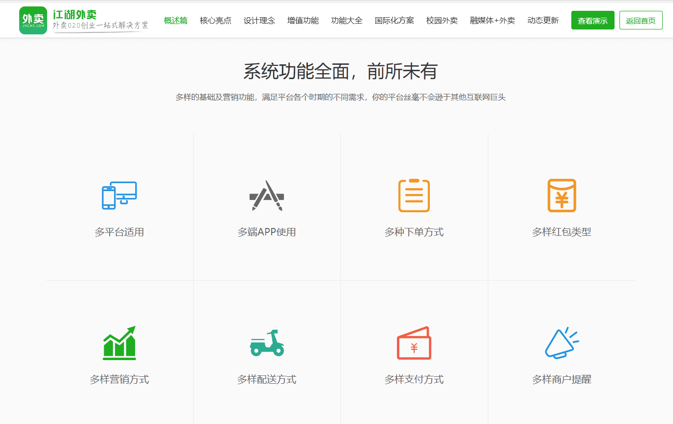 江湖外卖系统及快马外卖系统提供了一整套标准化的解决方案,包含了用户下单小程序、商家管理APP、骑手接单APP和总管理后台。你创业需要的所有核心功能,它都提前准备好了。