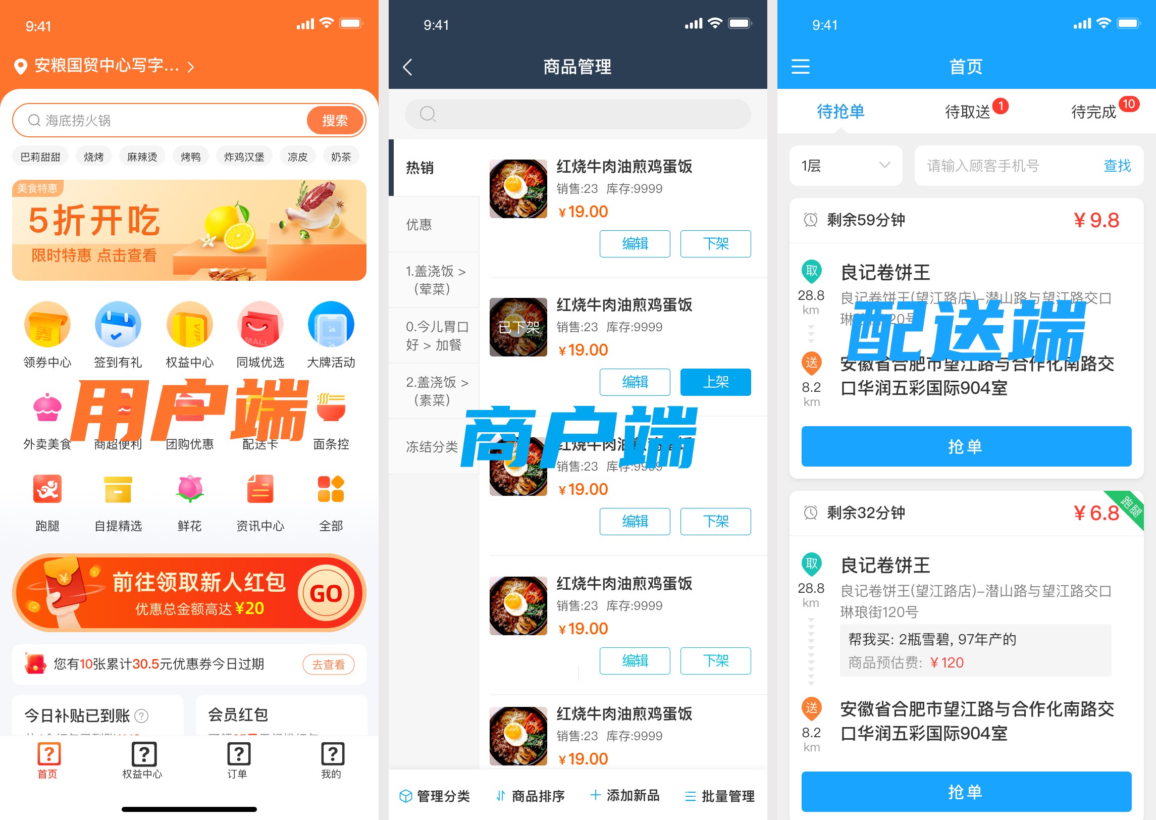 目前主流的外卖系统已覆盖用户端、商家端、骑手端、后台管理四大端口,支持小程序、APP 多端接入,几天就能完成基础部署,真正实现 “拿来就能跑”。
